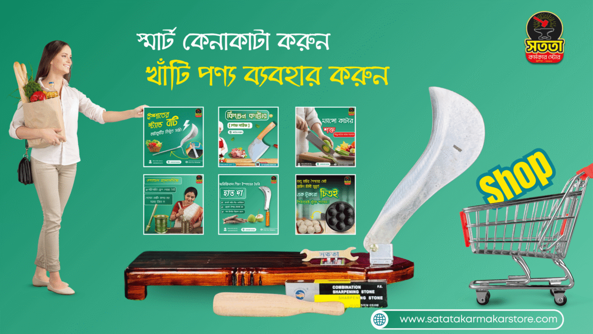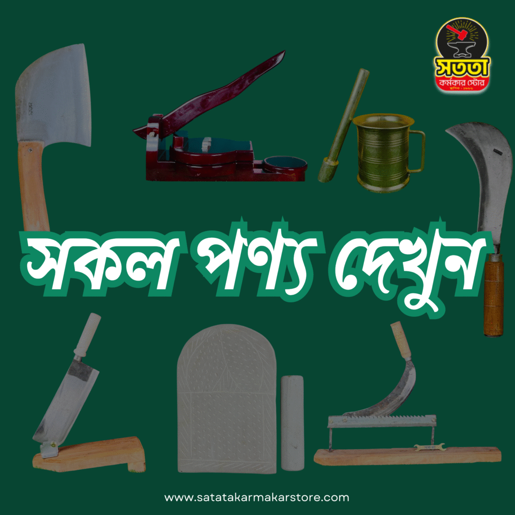 “সততা কর্মকার স্টোর” সংসারে রান্নাঘরের নিত্য-প্রয়োজনীয় বটি-দা,নাইফ সহ দেশি-বিদেশি পন্যের সবচেয়ে বড় ই-কমার্স প্ল্যাটফর্ম। আমাদের কাছে পাবেন অরিজিনাল ইস্পাত এবং সর্বোচ্চ মানের বটি,দা,নাইফ,নারিকেল কুরানি সহ ইত্যাদি আইটেম। ক্রেতাদের সন্তুষ্টি নিশ্চিত করতে সাশ্রয়ী মূল্যে, দ্রুত ডেলিভারি এবং নির্ভরযোগ্য সেবা দিয়ে দীর্ঘ বছর ধরে আমরা এগিয়ে চলছি ! আমাদের পণ্যের সেরা মান এবং সততার কারণে আমরা লাখো ক্রেতার প্রথম পছন্দ হয়ে উঠেছি। আপনার প্রয়োজন অনুযায়ী সেরা মানের পণ্য কেনাকাটা করুন সহজে ও ঝামেলাহীনভাবে। আমাদের সাথেই থাকুন, সেরা পণ্য ও সেবার অভিজ্ঞতা উপভোগ করুন