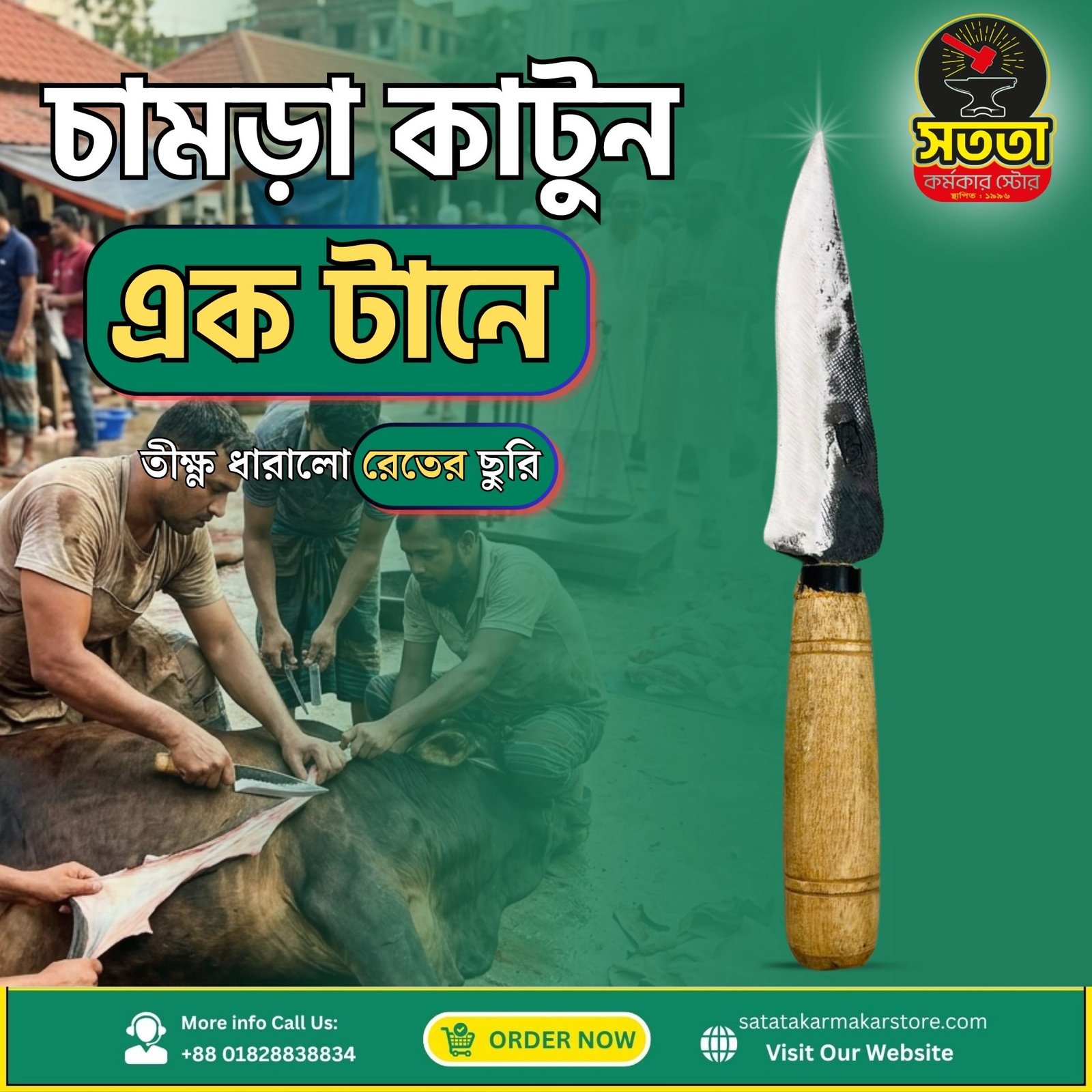 ধারালো অংশ ৬ইঞ্চি।একাধিক পশুর চামড়া ছেলা যাবে অনায়াসে।